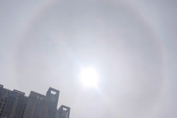 不少北京網友在社交平台發布的視頻顯示,今天上午,北京的天空中出現一輪巨大的日暈,太陽周圍環繞著一圈七彩光環。