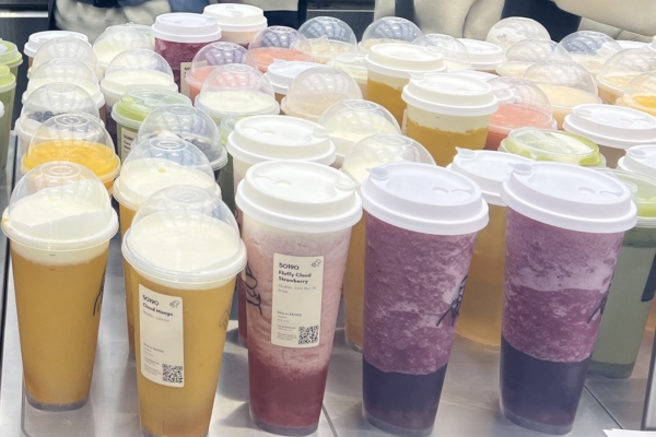 霸王茶姬上市不足一年,市值蒸發近70%。圖為各種水果口味的奶茶。(趙芬妮/大紀元)