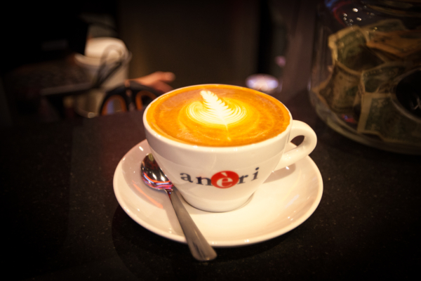 A latté made from the Robusta Espresso Bar, inside the IGT Jewelry Mall, in the Diamond District of Manhattan, New York, on July 24, 2014. (Benjamin Chasteen/Epoch Times)
