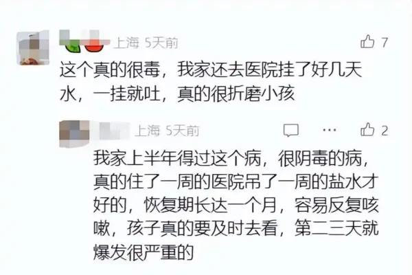 一位家長表示,她的孩子感染合胞病毒後,「咳嗽要咳一整夜」。另一位家長則擔憂地表示,孩子感染合胞病毒後開始發熱,最終發展成肺炎,正在接受掛水治療。更令人憂心的是,合胞病毒具有家庭聚集性。