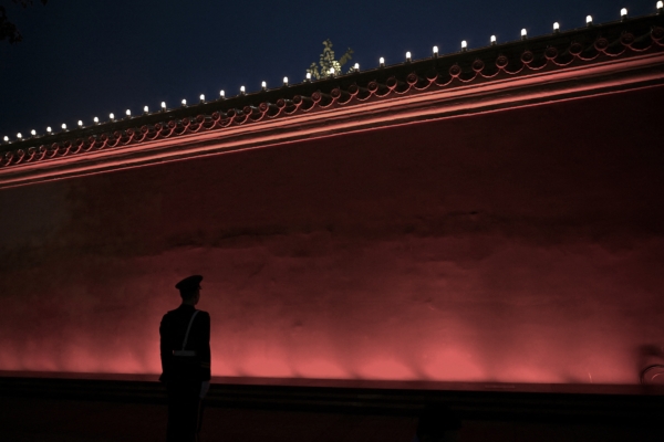 2025年9月3日凌晨,武警在北京天安門廣場附近站崗。(PEDRO PARDO/AFP via Getty Images)