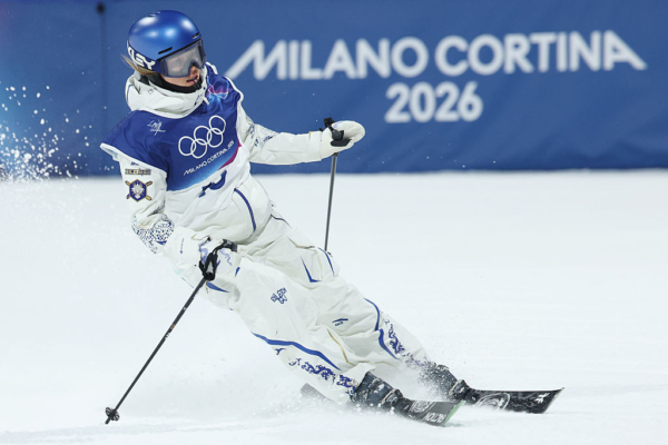 2026年2月13日,在米蘭-科爾蒂納冬奧會第七天,美籍華人運動員谷愛凌(Eileen Gu)代表中國參賽女子自由式滑雪大跳台項目。(Michael Reaves/Getty Images)