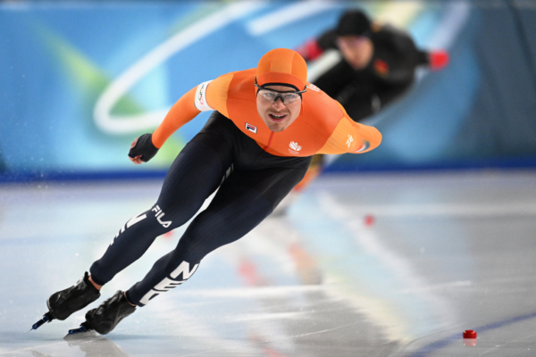2026年2月11日,在意大利米蘭的速度滑冰體育館,荷蘭選手約普‧文內馬爾(Joep Wennemars)正在參加2026年米蘭-科爾蒂納丹佩佐冬奧會速度滑冰男子1,000米比賽。 (Daniel Munoz/AFP via Getty Images)