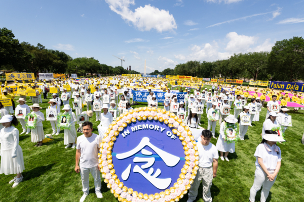 在法輪功反迫害26周年之際,2025年7月17日,來自美國東部地區的部分法輪功學員與支持者在美國首都華盛頓國會山附近的國家廣場(National Mall)舉行大型集會,呼籲「解體中共,停止迫害法輪功」。(戴兵/大紀元)