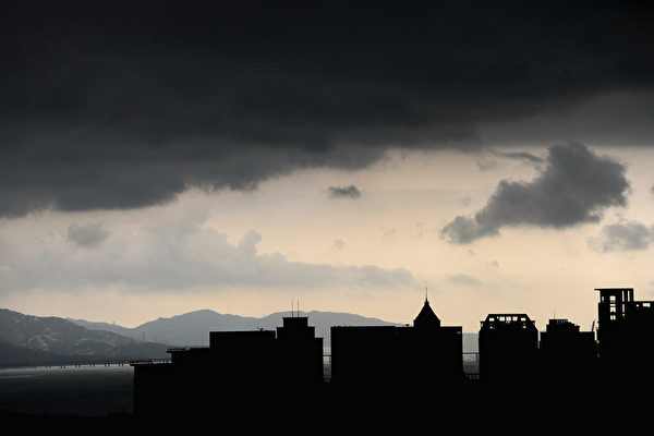 SHENZHEN, CHINA - APRIL 17: (CHINA OUT) Dark clouds bearing down on the city on April 17, 2011 in Shenzhen, Guangdong Province of China. According to flood control authorities on Monday, gales as strong as 45.5 meters per second, accompanied by hailstorm, cloudburst and strong wind battered cities including Guangzhou, Foshan, Zhaoqing and Dongguan of south China's Guangdong Province on Sunday, has killed at least 17 people and injured 118. (Photo by ChinaFotoPress/Getty Images)