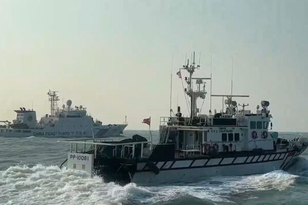 中華民國海洋委員會海巡署金馬澎分署表示,2025年1月21日偵獲4艘中共海警船陸續出現在金門南面限制水域,立即部署4艘巡防艇趨前、對應阻止。(中華民國海洋委員會海巡署金馬澎分署提供)