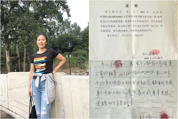林春芬表示,公安機關公開偽造證據。例如,在一審判決書中控方提供的證人蔣厚傑、杜合成、吳漢明於2025年初分別親筆聲明自己未作過任何證言,也沒有公安人員找過他們,判決書中的證言是偽造的。
