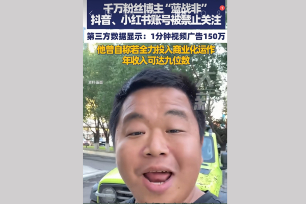 【2025年09月26日訊】(記者邢度報導)擁有近2,500萬粉絲的知名博主「藍戰非」,近日在抖音與小紅書的帳號突然遭到限制,新增關注功能被封鎖,B站也傳出類似情況。自9月中旬停止更新以來,相關平台始終沒有公布處理原因,事件在靜默中持續發酵,引發外界對網絡平台治理邊界與權力運作的質疑。