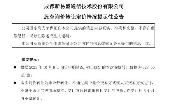 公告同時表示,此次詢價轉讓為非公開轉讓,不通過集中競價交易方式或大宗交易方式進行,不屬於通過二級市場減持。受讓方通過詢價轉讓受讓的股份在受讓後6個月內不得轉讓,而且「本次詢價轉讓不涉及公司控制權變更,不會影響公司治理結構和持續經營。」