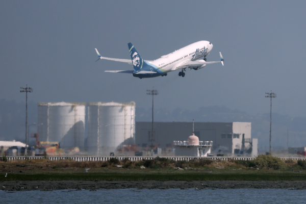 SAN FRANCISCO, CALIFORNIA - JUNE 04: An Alaska Airlines jet takes off from San Francisco International Airport on June 04, 2025 in San Francisco, California. Alaska Airlines is delaying the delivery of two Embraer E175 planes from Brazilian manufacturer Embraer due to tariffs imposed by the Trump administration, and says it will not accept additional costs imposed by tariffs. (Photo by Justin Sullivan/Getty Images)