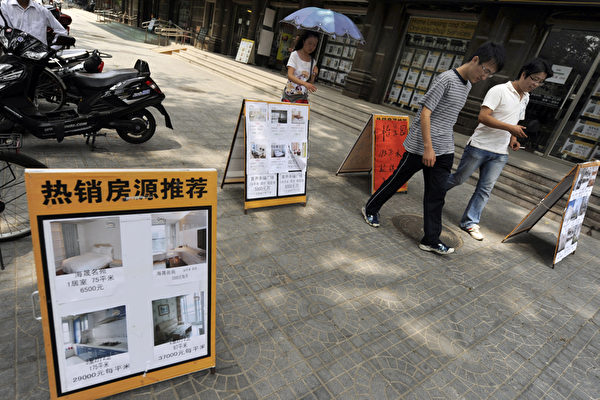 中國樓市持續下行,為了賣房,部分業主不得不貼錢賣掉房產。圖為一家房産中介門前廣告。(Peter Parks/AFP/Getty Images)