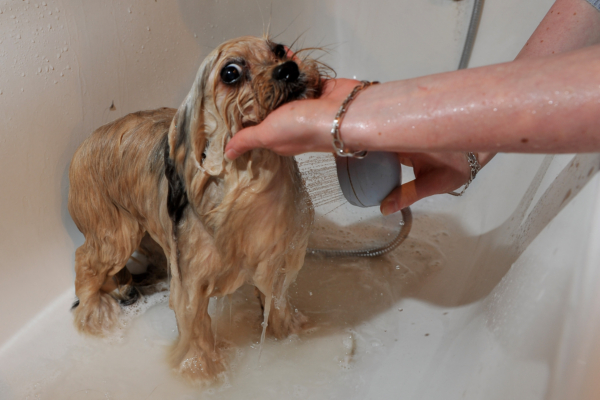 一家寵物美容院的員工幫小狗洗澡。(Pascal Le Segretain/Getty Images)