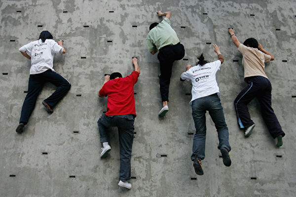 BEIJING - NOVEMBER 1: Teenagers practise at the rock-climbing club of China Geologic University on November 1, 2005 in Beijing, China. The club is one of the first and biggest to be established in China, founded in 1992 and has trained about 1000 climbers. Every week some 200 climbing enthusiasts take part in the club's events. (Photo by Guang Niu/Getty Images)