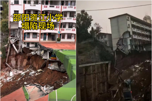 【2025年10月18日訊】10月17日晚23時許,湖南邵陽市資江學校西邊圍牆和操場發生坍塌,導致教學樓西側部分牆角受損。