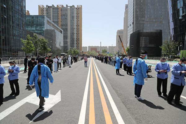 示意圖。圖為2022年4月26日,人們在北京麗澤金融商務區排隊等待COVID-19核酸檢測。(Vcg/Vcg via Getty Images)