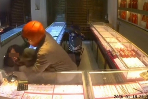 【2026年01月24日訊】金價突破每盎司4900美元關口之際,福建平潭日前有金店發生搶劫案,一男一女兩匪徒犯案,男子更手持電棒電擊店主,搶劫金飾後逃走。
