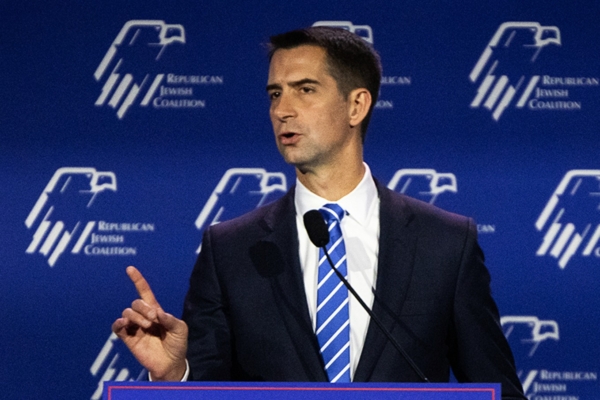 2024年9月5日,內華達州拉斯維加斯,美國聯邦參議員湯姆‧科頓(Tom Cotton)在共和黨猶太人委員會的聚會上發言。科頓近日致信美國商務部,要求川普政府幫助大馬打擊芯片走私中國。(John Fredricks/The Epoch Times)