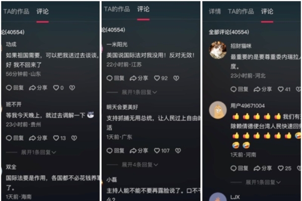 不過,對美國生擒委內瑞拉總統馬杜羅,大陸網友與官媒唱反調。在社交媒體抖音上,「中國新聞社」官方帳號上的相關消息的評論區有4萬多條網友的留言,紛紛公開諷刺、挖苦中共。