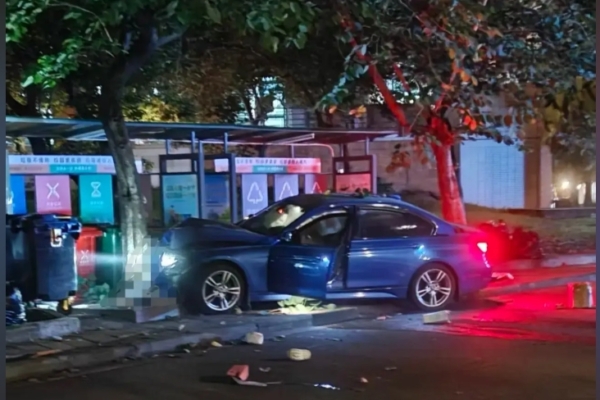 現場照片顯示,一輛小轎車撞上路邊的垃圾桶。據一名知情學生向澎湃新聞介紹,事發地點在華南理工大學大學城校區D4教師宿舍和C3學生宿舍中間路段,一處垃圾站附近,這裡距離學生宿舍很近,大概100米。事故造成該校2025級電氣類專業女生陸某死亡,以及一名舞蹈學專業的學生受傷,肇事司機是該大學藝術學院教師金某。