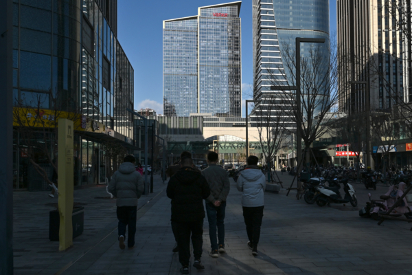 People walk near the building of Chinese real estate developer Vanke in the Tongzhou district in Beijing on December 5, 2024. (Photo by ADEK BERRY / AFP) (Photo by ADEK BERRY/AFP via Getty Images)