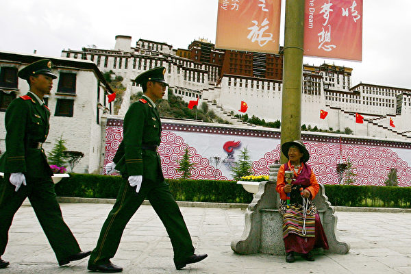 示意圖。2008年6月20日,中共武警在西藏拉薩布達拉宮前巡邏。(Guang Niu/Getty Images)