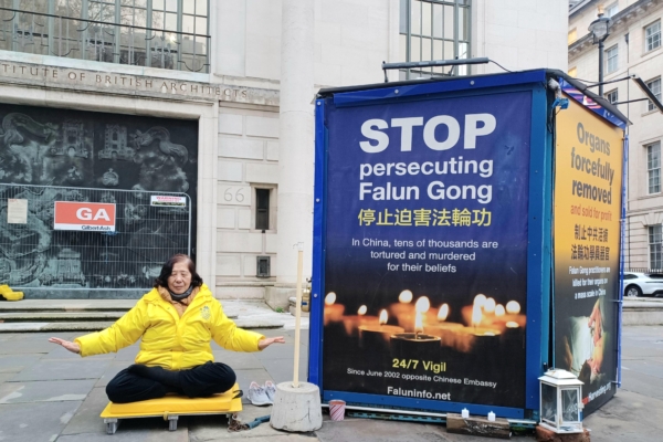 英國時間2025年12月29日晚,陳條生到達英國倫敦。從第二天開始,她就迫不及待參與到英國法輪功學員的和平抗議與反迫害活動中了。