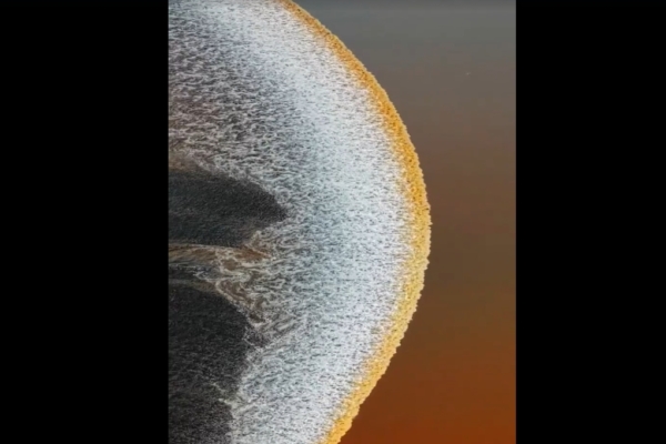 近日,錢塘江驚現月亮潮,直徑達300米的月牙形潮湧橫貫江面,將江水分割成兩半。恰逢中秋賞月高峰,引發廣泛關注。(視頻截圖)