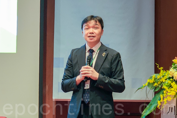 2025年9月26日,中華民國陸委會副主委沈有忠在「川普第二任期地緣政治變化與台美中關係走向」學術研討會發表專題演講。(鍾元/大紀元)