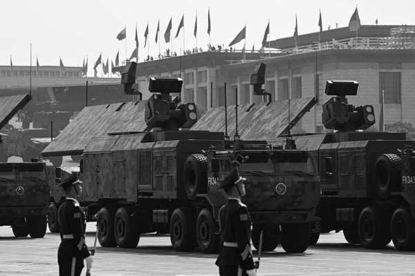 2025年9月3日,北京天安門廣場,紀念抗日戰爭勝利暨二戰結束80周年閱兵式上,展示的激光武器。(Greg Baker/AFP)