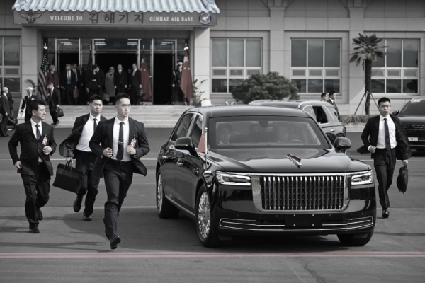10月30上午,美國總統川普(特朗普)與習近平在韓國釜山金海國際機場空軍基地內的貴賓樓翼峰樓舉行川習會。會後習離開時,中方保鏢在其乘坐的防彈車兩旁緊隨小跑,也引發熱議。