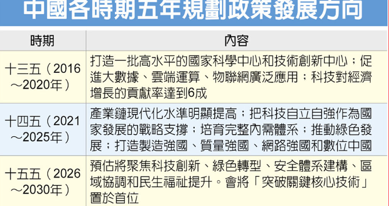 稍早有分析指出,「十五五」是中国迈向「现代化强国」目标中承上启下的关键阶段,尤其在全球经贸环境愈趋复杂、中美竞争深化、内部消费疲软与产能过剩等挑战下,中国急需透过「规划」明确转型路线,除强调高质量发展外,政策重点预计将聚焦科技自强、内需扩张、碳中和路径与社会保障体系等面向。