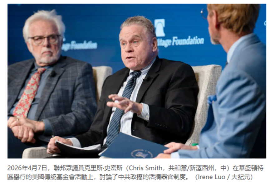 史密斯也在小组会议上发言。三十多年来,在国会中他一直都是一位直言不讳的人权倡导者,并就中共侵犯人权的行为举行了一百多场听证会。