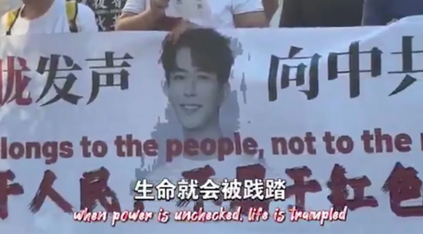 许多抗议群众面对镜头控诉:「他从舞台走来,用歌声与角色陪伴芸芸众生,然而在冰冷的高楼边缘,自由的翅膀被铁拳折断」、「但真相不会随坠落而沉没,因为记忆比谎言更长久」、「官方的结论比闪电更快,比真相更冷,一句『意外』掩盖了无数的真相,堵住了所有的呼喊」、「我们要追问,不接受冷酷的谎言,我们要守望,不容正义被掩埋」、「他不是孤独的坠落,而是千千万万冤魂的回声,在没有公正的土地上,生命被轻轻一推,就坠入深渊。」