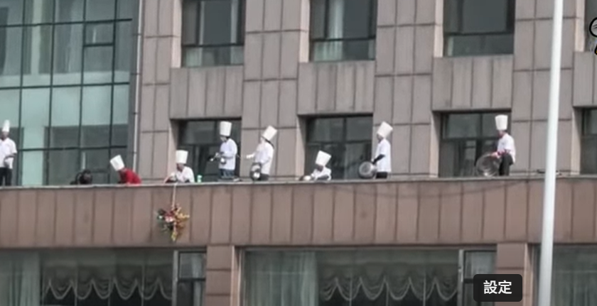 On October 6, in Ordos, Inner Mongolia, eight chefs at the Wanxinglong Grand Hotel stood on the hotel terrace during the Mid-Autumn Festival, banging pots and pans to demand their wages.