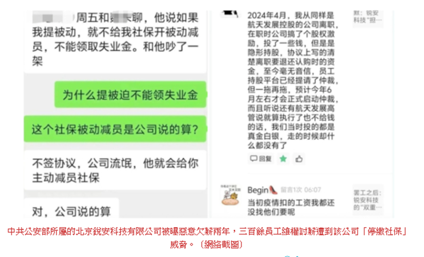 近期北京锐安科技有限公司员工频繁收到威胁,「要么听话服从安排,要么社保就给你停缴、封存,让你后续入职、就医都寸步难行」。