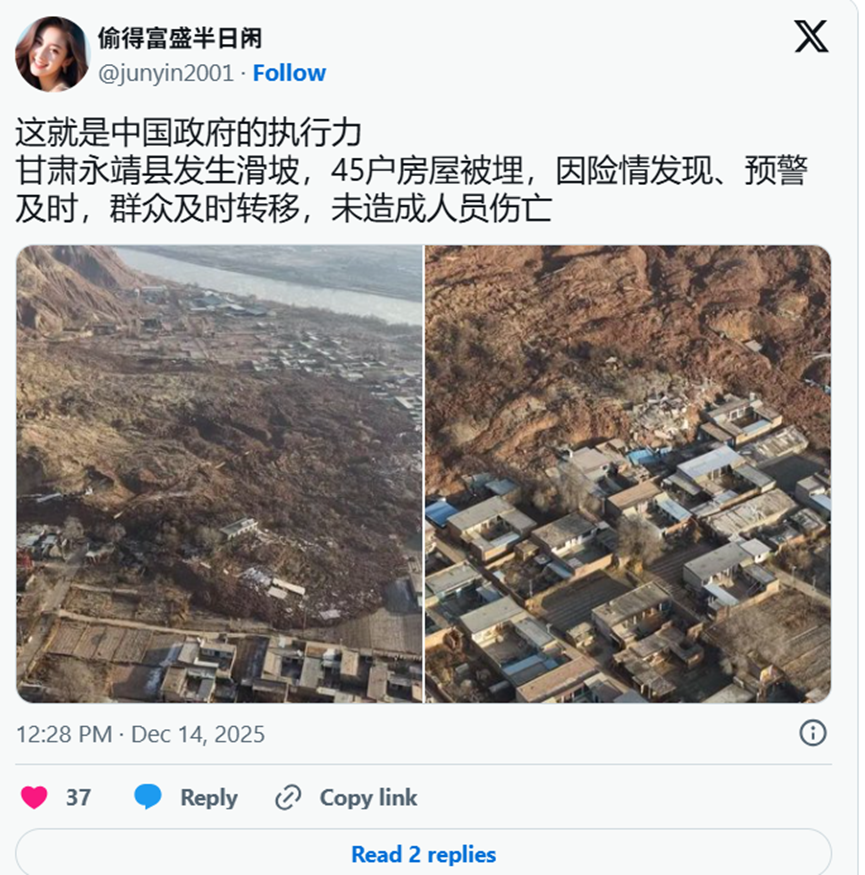 甘肃山体滑坡的悲剧不该只是“被埋的房屋数字”,它应成为一场有关责任、透明与制度改革的公共讨论。当政府用时间换沉默、用拖延换稳定,社会的信任就会被不知不觉地侵蚀。