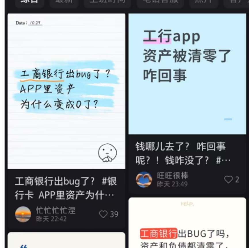 在社交平台如微博、论坛与视频网站上,大量用户爆料自己在登入工行 APP 时看到存款、理财与负债数据全数清零,甚至有使用者称一夜之间 10 多万元「瞬间变 0 元」,吓得直接报警求助。