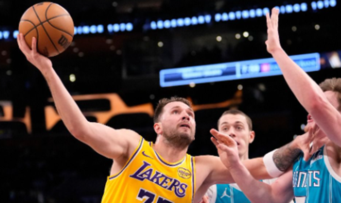 美国职篮(NBA)洛杉矶湖人(Los Angeles Lakers)近况起伏不定,16日面对夏洛特黄蜂(Charlotte Hornets)的比赛中,虽然唐西奇(Luka Doncic)和「詹皇」詹姆斯(LeBron James)连手攻下68分,但黄蜂全队轰进20记三分球,终场湖人以117:135吞下败仗,近5场比赛苦吞4败。