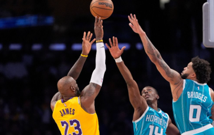 第三节开打后,黄蜂立刻靠着小鲍尔(LaMelo Ball)、布里吉斯(Miles Bridges)的三分球拉开比数,虽然湖人紧咬比数、单节拿下38分,但黄蜂本节一口气投进9记三分球、轰下40分,将领先扩大至104:93。