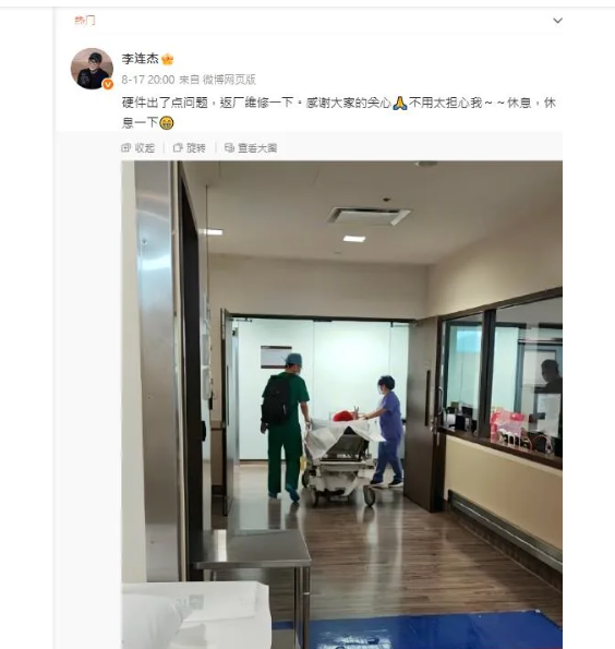 今年8月李连杰在贴文中自嘲:「硬件出了点问题,返厂维修一下」。